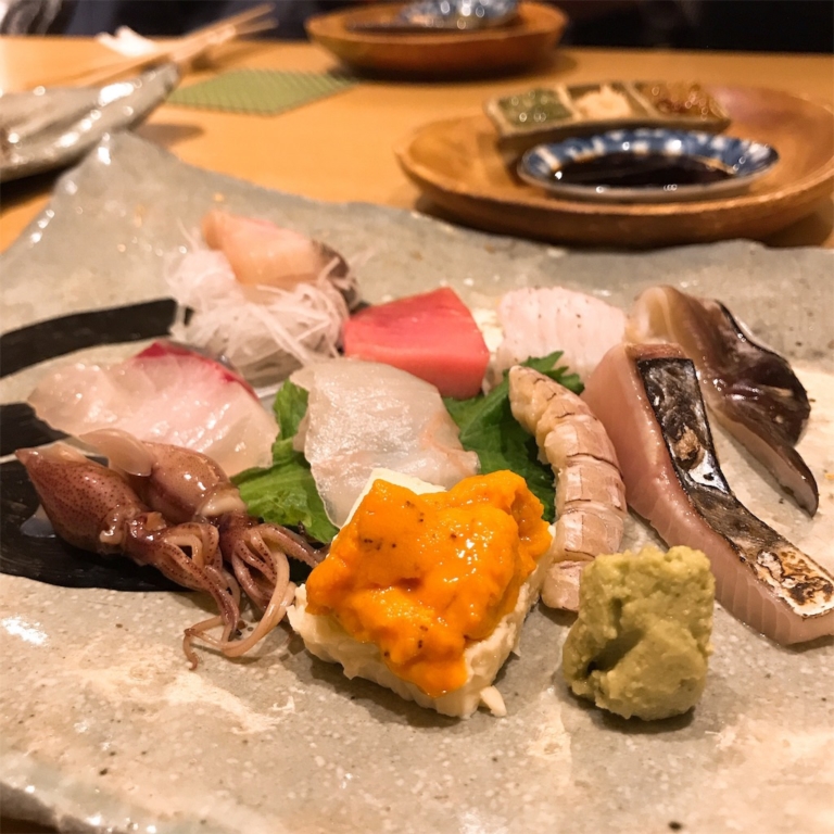 薬味はわさびだけじゃなくて、もろみや、塩などもあって、それなのに各種1つずつしかお皿には乗っていなくて、結局わさびと醤油でほとんど食べてしまいました…