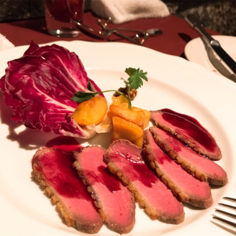 食べてみると少しピリっとしたお味で、なんとも鴨肉との相性がすばらしいです…